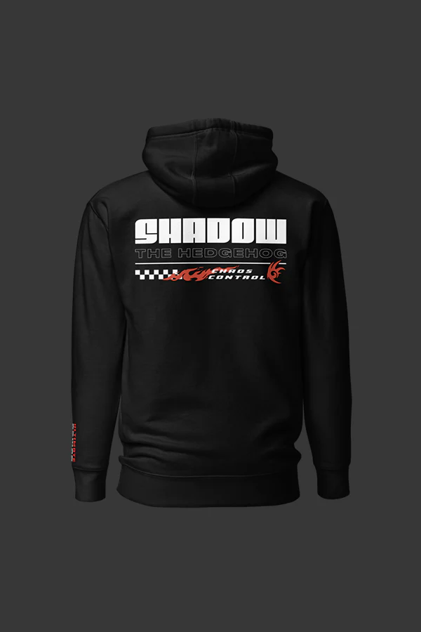 If this hoodie makes you stop and stare, you may be experiencing the effects of Chaos Control. Time will slow into a halt, and you’ll find yourself admiring all the hoodie’s little details: Shadow’s head embroidered on the chest, his name in Japanese, and the printed design on the back.